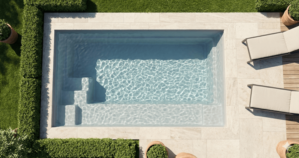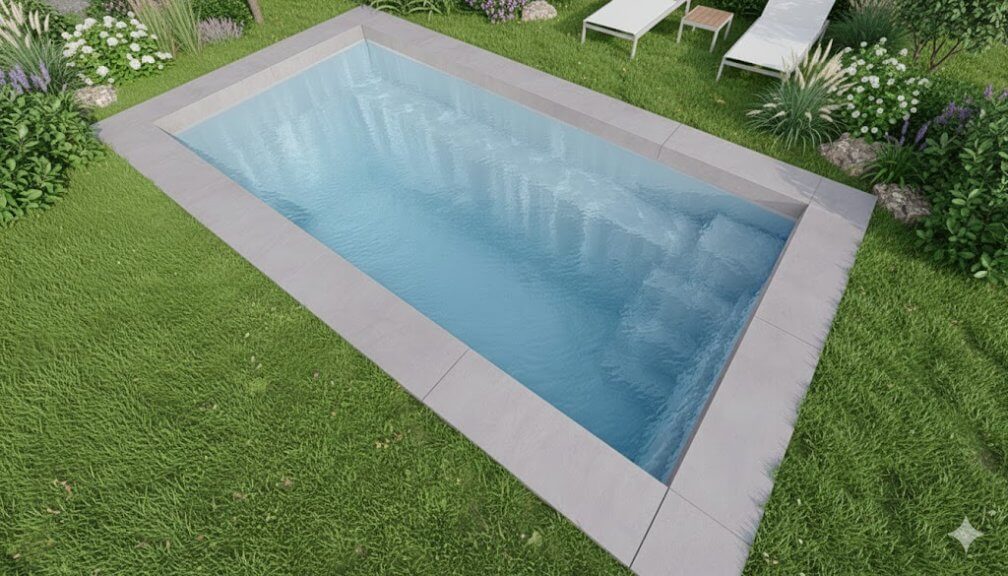 L'Angélite 4 est la piscine coque polyester compacte idéale pour les petits jardins de Loire et Haute-Loire, avec ses 4,40 m de longueur et son fond plat à 1,40 m — une profondeur volontairement douce pour une utilisation familiale sans contrainte. Sa banquette filante sur toute la longueur du bassin invite à la détente et offre un appui confortable pour les enfants qui apprennent à nager. L'escalier à faible encombrement préserve la surface de nage maximale dans ce gabarit réduit. Alliance Piscines la pose clé en main dans le 42 pour un résultat soigné dès les petites surfaces.