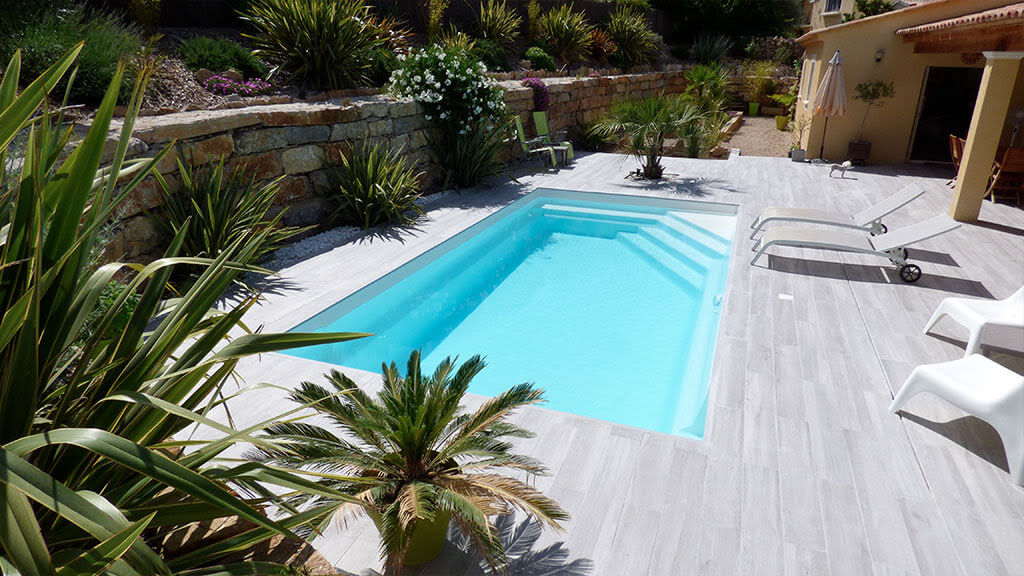 La gamme Célestine est la référence des piscines coques polyester rectangulaires à fond plat. Conçue pour allier confort et esthétique, elle s'intègre parfaitement dans les jardins de la Loire (42) et de la Haute-Loire (43). Sa grande banquette latérale offre un espace de détente idéal, tandis que ses marches larges garantissent une mise à l'eau sécurisée pour les enfants comme pour les seniors. Fabriquée en France avec une résine polyester renforcée, la Célestine bénéficie de la garantie 30 ans Alliance Piscines sur la structure. Sa surface de baignade optimisée en fait le choix parfait pour les familles recherchant une piscine fonctionnelle et durable. Disponible en plusieurs dimensions pour s'adapter à tous les jardins, de Saint-Étienne à Roanne en passant par Le Puy-en-Velay.