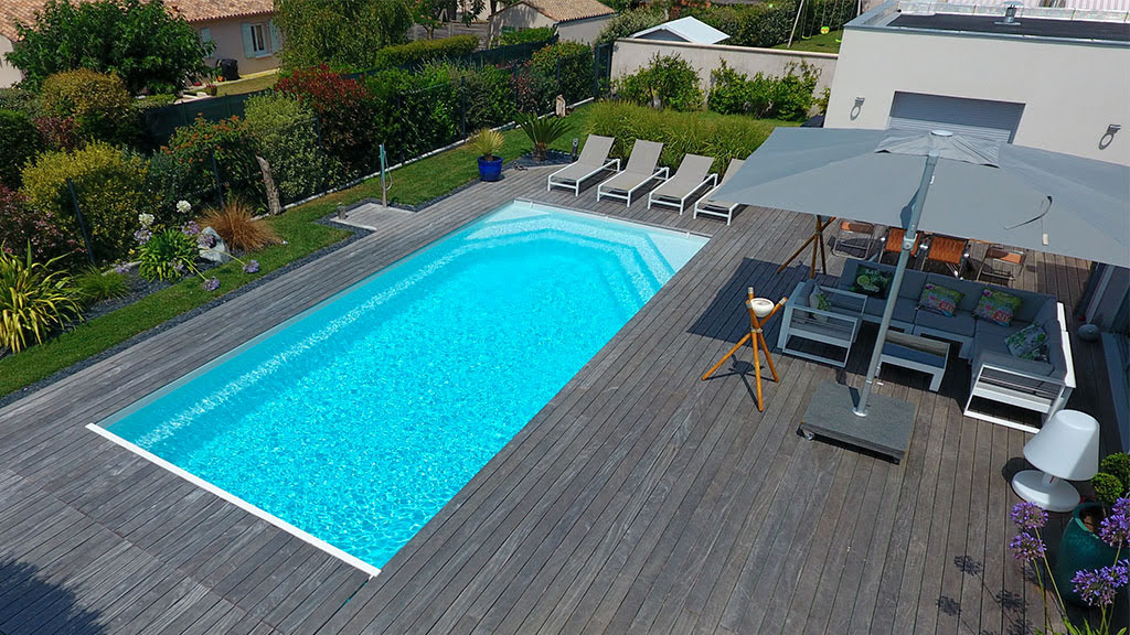 La Célestine 9 est la Célestine grand format, 9,05 m de longueur pour une surface de nage qui dépasse les 36 m² avec une profondeur constante de 1,46 m. Cette piscine coque polyester, best-seller d'Alliance Piscines en Loire et Haute-Loire, dispose d'une banquette généreuse et d'un espace volet roulant immersible pour un entretien facilité. Ses marches larges et son fond plat homogène en font un bassin universellement accessible, des plus petits aux plus grands. Alliance Piscines la pose et l'équipe intégralement dans le département.