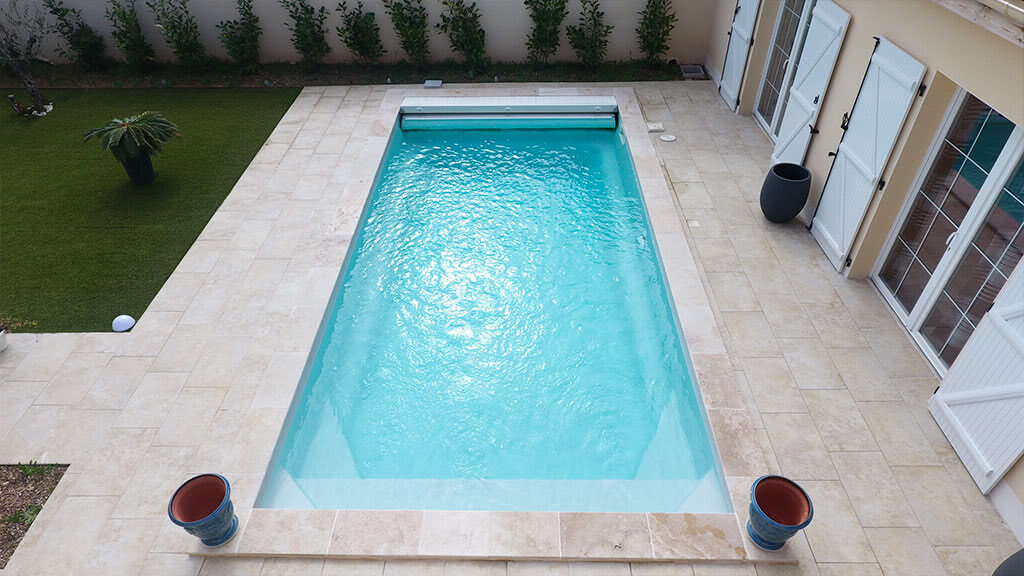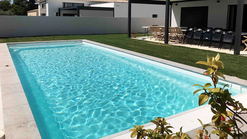 Piscine rectangulaire avec espace détente intégré — disponible en plusieurs tailles pour tous les jardins